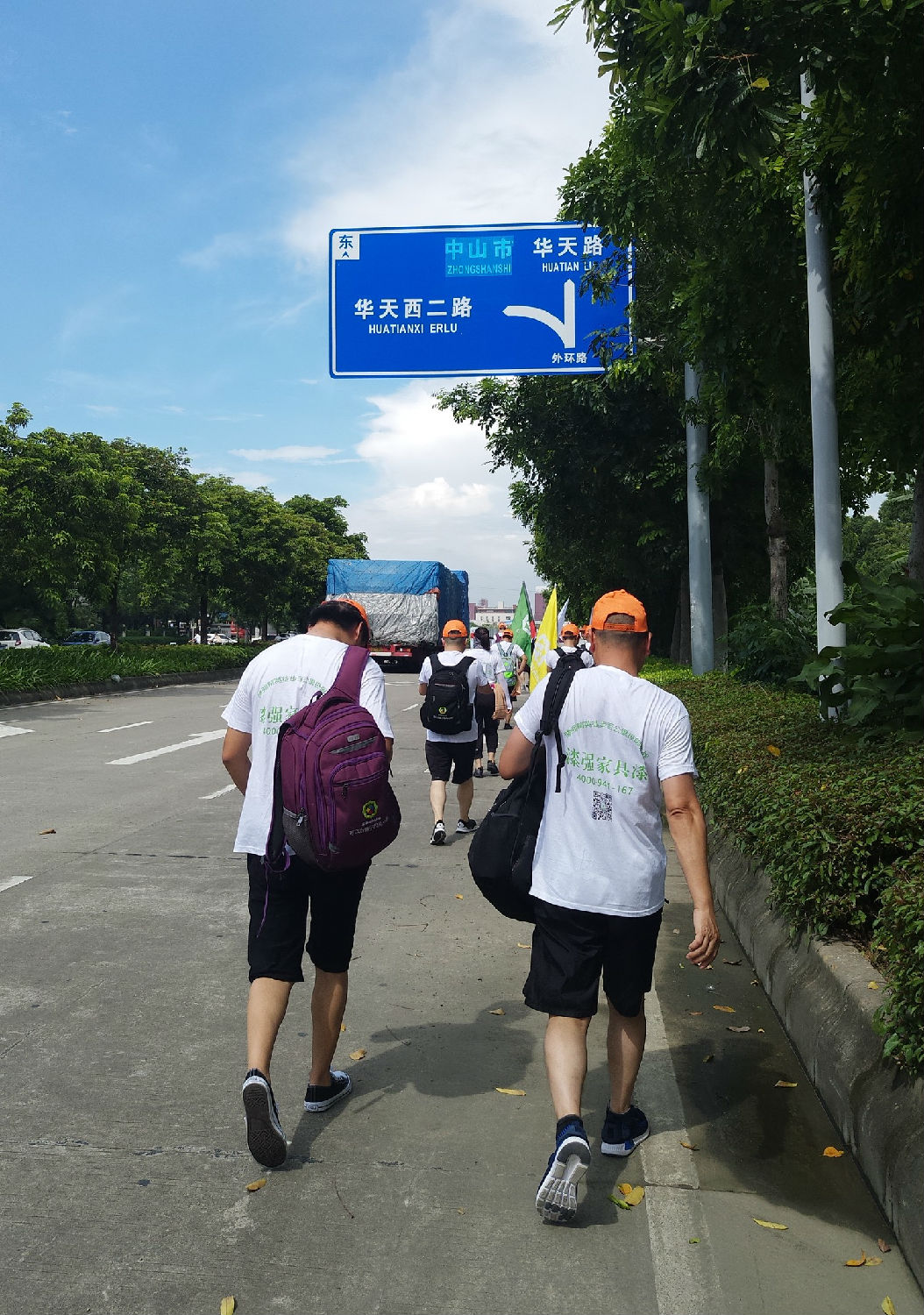 經(jīng)過(guò)一小時(shí)的步伐不停,我們到達(dá)中山市啦,但是距離目標(biāo)地點(diǎn)還有很遠(yuǎn)哦。雖然天開(kāi)始漸漸熱了起來(lái),不過(guò)不怕,大家現(xiàn)在還是十分熱情高漲的,問(wèn)他們累不累都異口同聲地說(shuō)“不”,精英不愧是精英啊?