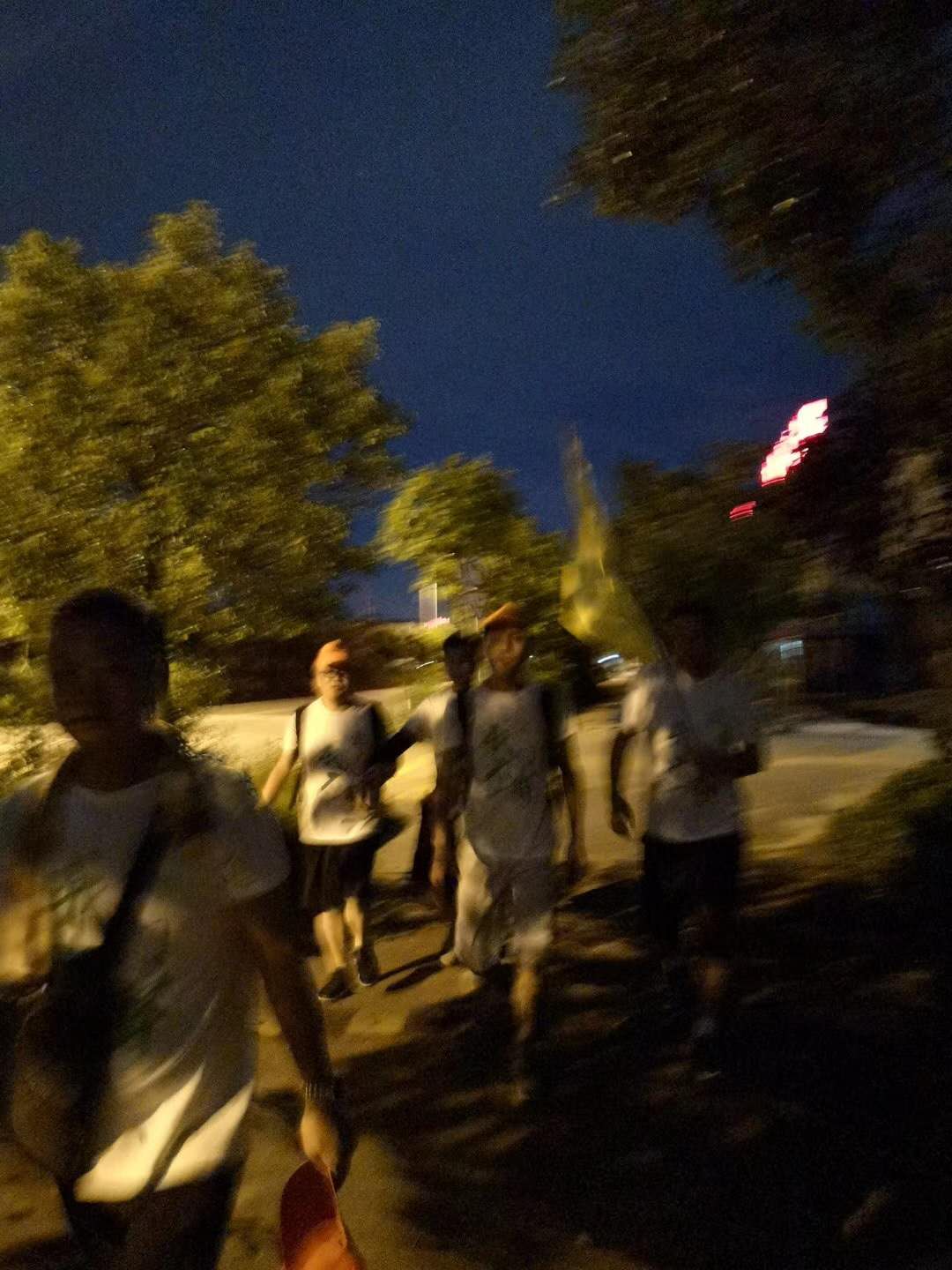 天已經(jīng)完全黑下來(lái)了,終于陸陸續(xù)續(xù)有人扛不住了,剩下來(lái)繼續(xù)徒步的又苦又餓的小伙伴們像無(wú)辜的小孩飄蕩在路上,本來(lái)高舉著的大旗都只能勉強(qiáng)扛著肩上拖著,可憐、弱小、又無(wú)助??